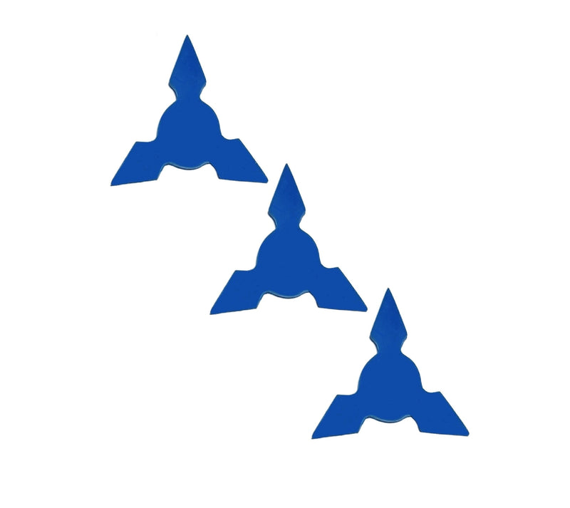 Our ninja 3 point rubber training shuriken are made from professional grade, super strong flexible rubber. Modeled after actual ninja shuriken for realistic training. These are great to train in hand to hand combat. Great addition to your Ninjutsu training! Huge selection of colors to choose from! *Sold in packs of 3.